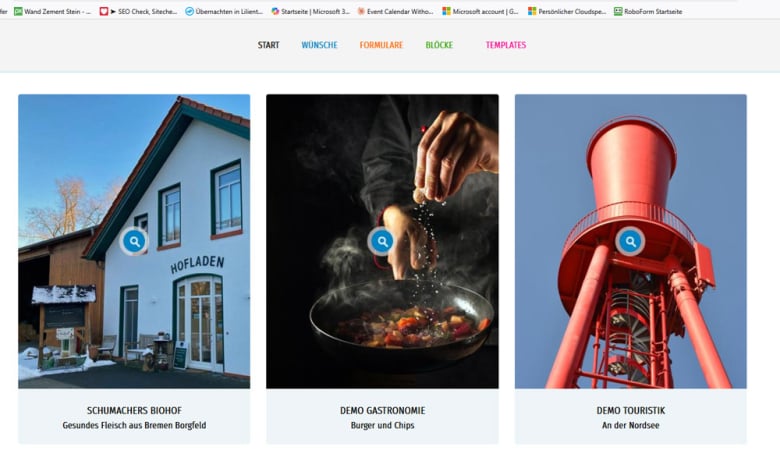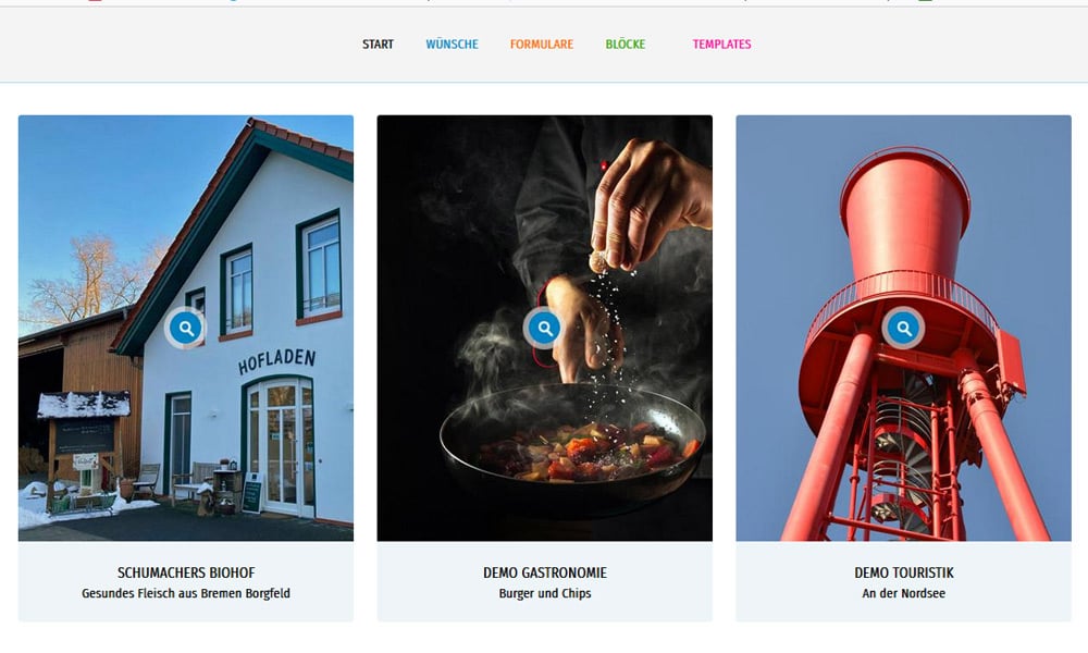 Enthalten ist ein Gesamtbild mit maximal 9 weiteren Bildern, die in einer Lightbox geöffnet werden sowie dazu ausführliche Textinformationen.