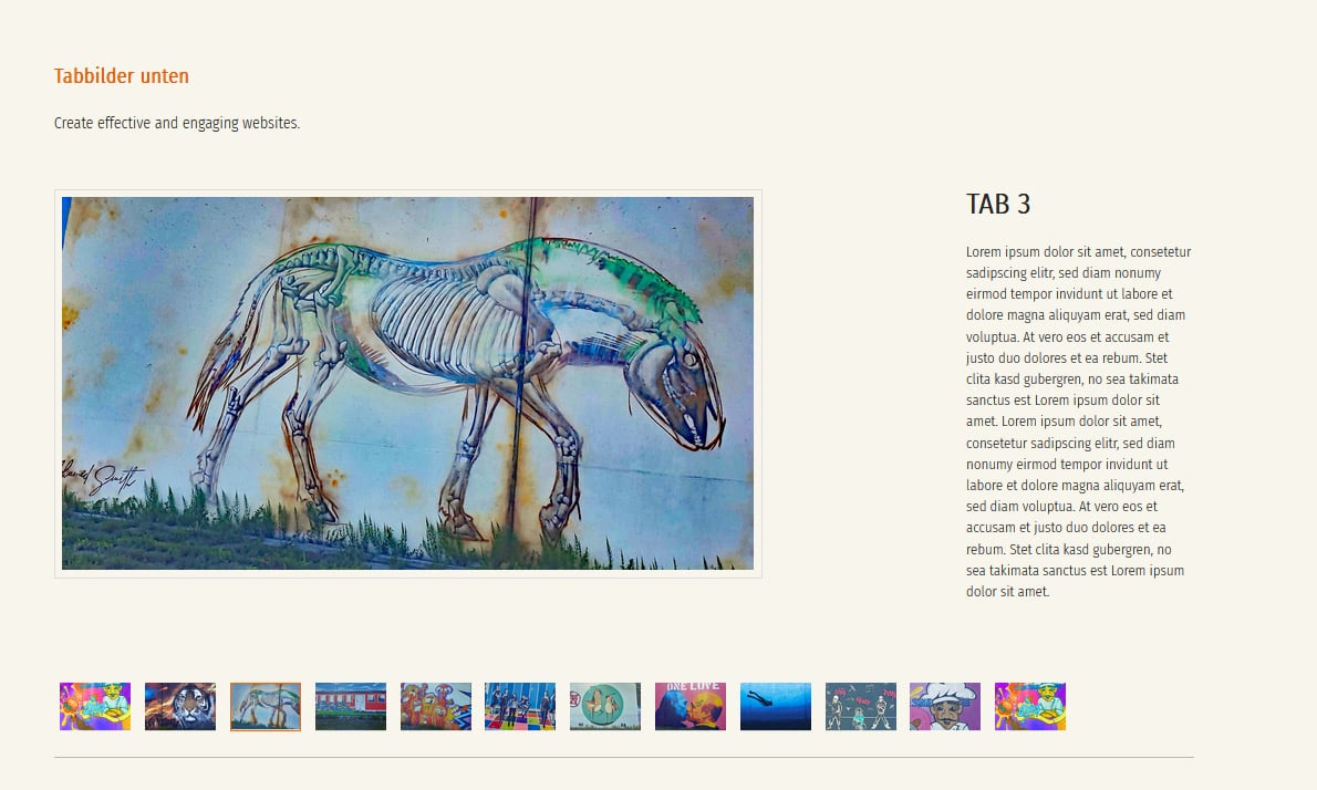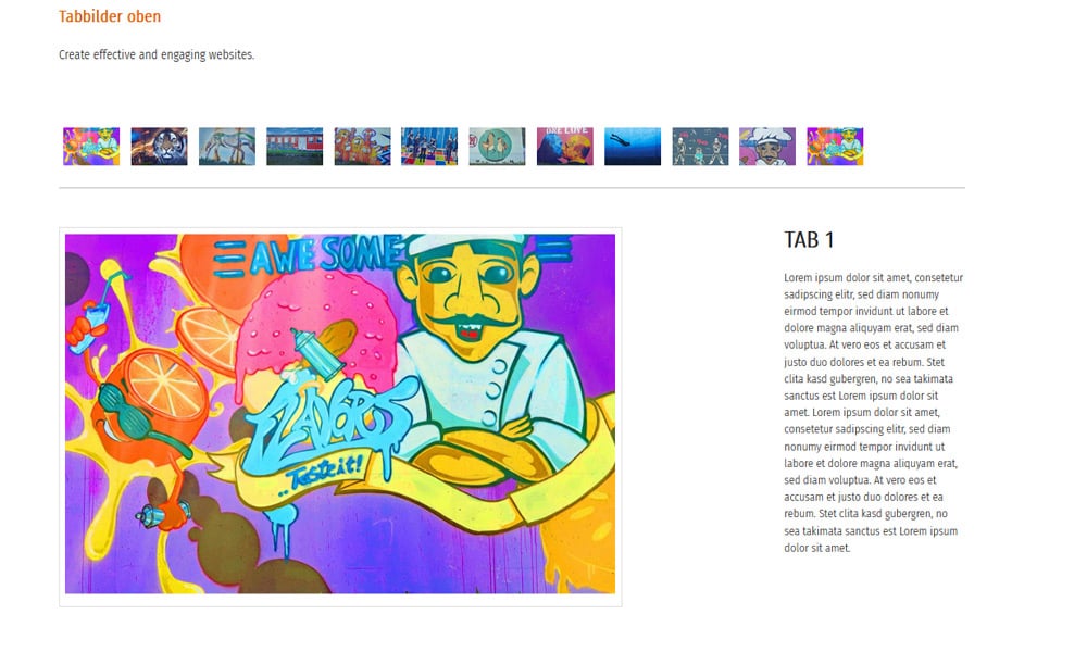 A code editor is required for the thumbnails (tabs); the labels must be set in the HTML editor.