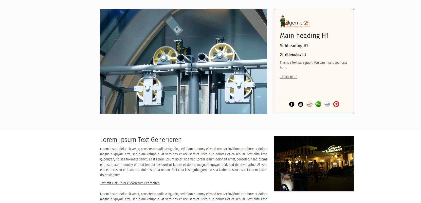 Sie können links und rechts unabhängig Inhalte (Container) einfügen. Wählen Sie aus, ob: Bild oder Textblock.